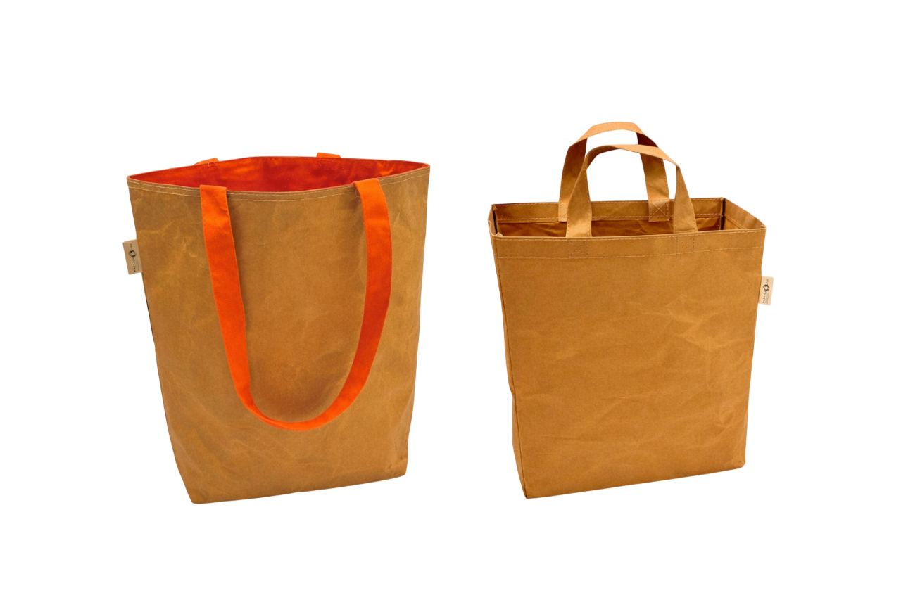 Unsere Tragetaschen aus Washable Paper verbindet eine natürliche Papieroptik mit überraschender Robustheit. Sie fühlt sich an wie Papier, ist reissfest und abwaschbar.